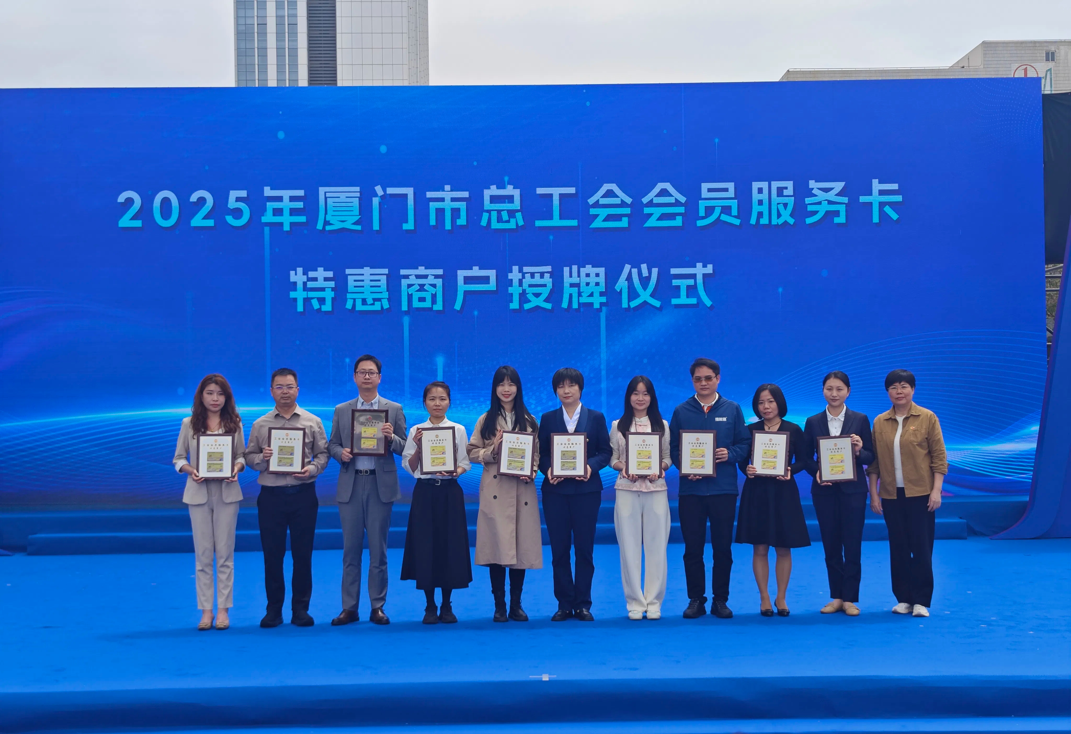 4月13日,由廈門市總工會指導(dǎo)、市機關(guān)事業(yè)工會聯(lián)合會主辦的“惠工聚益 共享美好”2025年工會集市活動在五一廣場盛大啟幕。廈門鷺燕大藥房作為2025年“工會會員服務(wù)卡特惠商戶”首批新簽約的10家優(yōu)質(zhì)企業(yè)正式獲得授牌,并攜多項健康惠民服務(wù)亮相。
