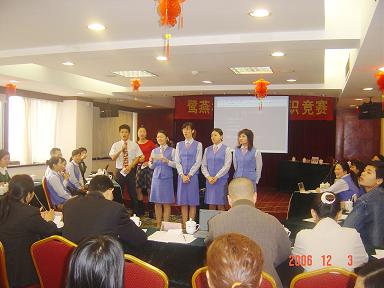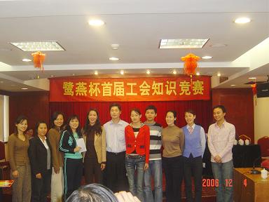 廈門鷺燕大藥房有限公司于2006年12月3日在廈門廬山大酒樓隆重舉行鷺燕杯首屆工會知識競賽,此次工會知識競賽由6個工會小組各自選派4名選手參加,比賽環(huán)節(jié)包括團(tuán)隊(duì)介紹、啦啦隊(duì)互動、演講比賽、必答題、搶答題、猜詞秀、才藝表演等,形式多樣、內(nèi)容豐富。比賽現(xiàn)場還邀請了一些供應(yīng)商的代表作為嘉賓評委,為比賽進(jìn)行現(xiàn)場點(diǎn)評及頒獎。