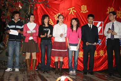 下午4:00整,在《好日子》歡快的歌舞中,表彰聯(lián)歡會正式拉開了序幕。會上共頒發(fā)了九個獎項,分別是最佳員工獎6人,最佳藥師獎2人,最佳新人獎、最佳參與獎、最佳貢獻獎各1人,最佳店長獎3人,最佳門店獎2個,還有兩個特殊的獎項:一是半年度毛利考核指標完成相對值、絕對值各前3名的門店,二是2000年8月前入職的老員工獎。頒獎過程中還穿插了員工們自編、自導(dǎo)、自演的小節(jié)目。他們用優(yōu)美的舞姿、甜美的歌聲、俏皮搞笑的小品為杰出的先進代表們喝彩、祝福,現(xiàn)場氣氛非?;钴S,高潮迭起,一張張如花的笑靨遨游在一片歡樂的海洋……最后,在《感恩的心》的優(yōu)美的旋律和熱烈的掌聲中,活動暫告一個段落。