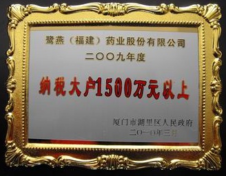 2010年3月23日,廈門湖里區(qū)人民政府召開2009年度納稅先進(jìn)企業(yè)表彰大會(huì),并公布2009年度納稅先進(jìn)企業(yè)名單,鷺燕集團(tuán)核心成員企業(yè)鷺燕(福建)藥業(yè)股份有限公司光榮登榜。自2006年以來(lái)鷺燕集團(tuán)已連續(xù)四年獲得納稅大戶(1000萬(wàn)以上)榮譽(yù)稱號(hào)。