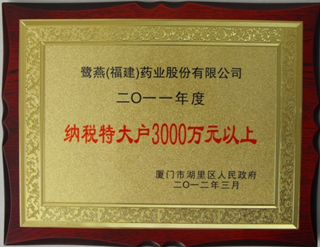 近日,廈門市湖里區(qū)隆重召開2011年度納稅先進(jìn)企業(yè)表彰大會(huì),鷺燕(福建)藥業(yè)股份有限公司以超3000萬(wàn)的突出納稅貢獻(xiàn)榮獲“2011年度廈門湖里區(qū)納稅特大戶”稱號(hào)。